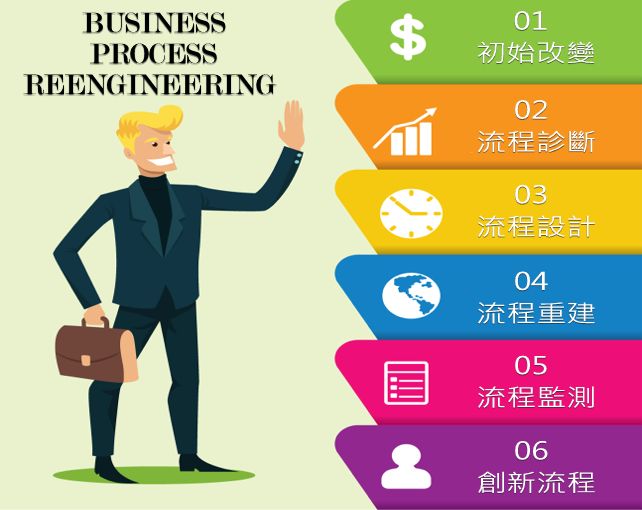 BPR在宏觀層面是合理性的高層次的改進。您不必修改子流程而是從根本上處理企