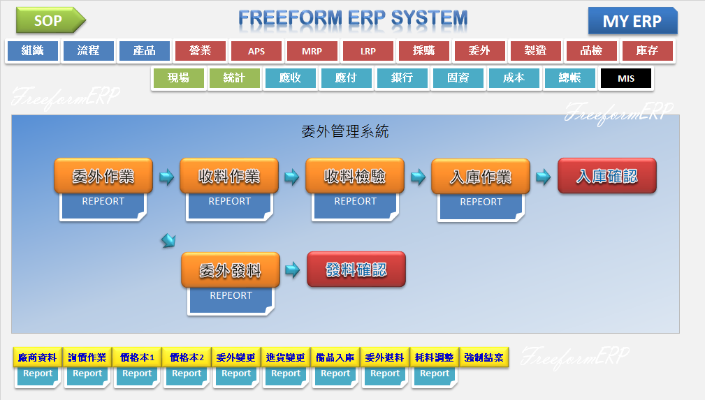 委外管理系統主要功能在於完成執行委外生産之管理作業 :