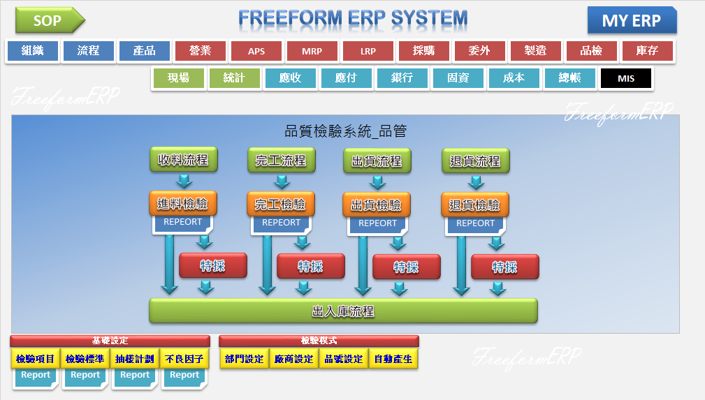 進行各項檢驗作業時會自動引導出檢驗之專案、檢驗之標準及抽樣之計劃內容。