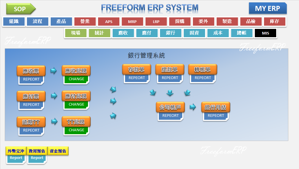 銀行進出明細矯由應收收款單與應付付款單的T/T 收款與付款粞加或減少帳戶餘額。