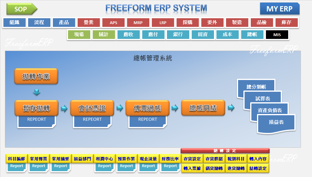 總帳會計管理系統彙整前端所有系統資料됏過傳票登綠、過帳、結轉뤢生各項帳務資料